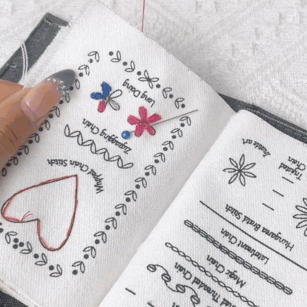 Varje sida är gjord av mjuk, slitstark tyg som håller dina stygn vackert och ger dig en mjuk duk att fokusera på den lugnande rytmen av nål och tråd.